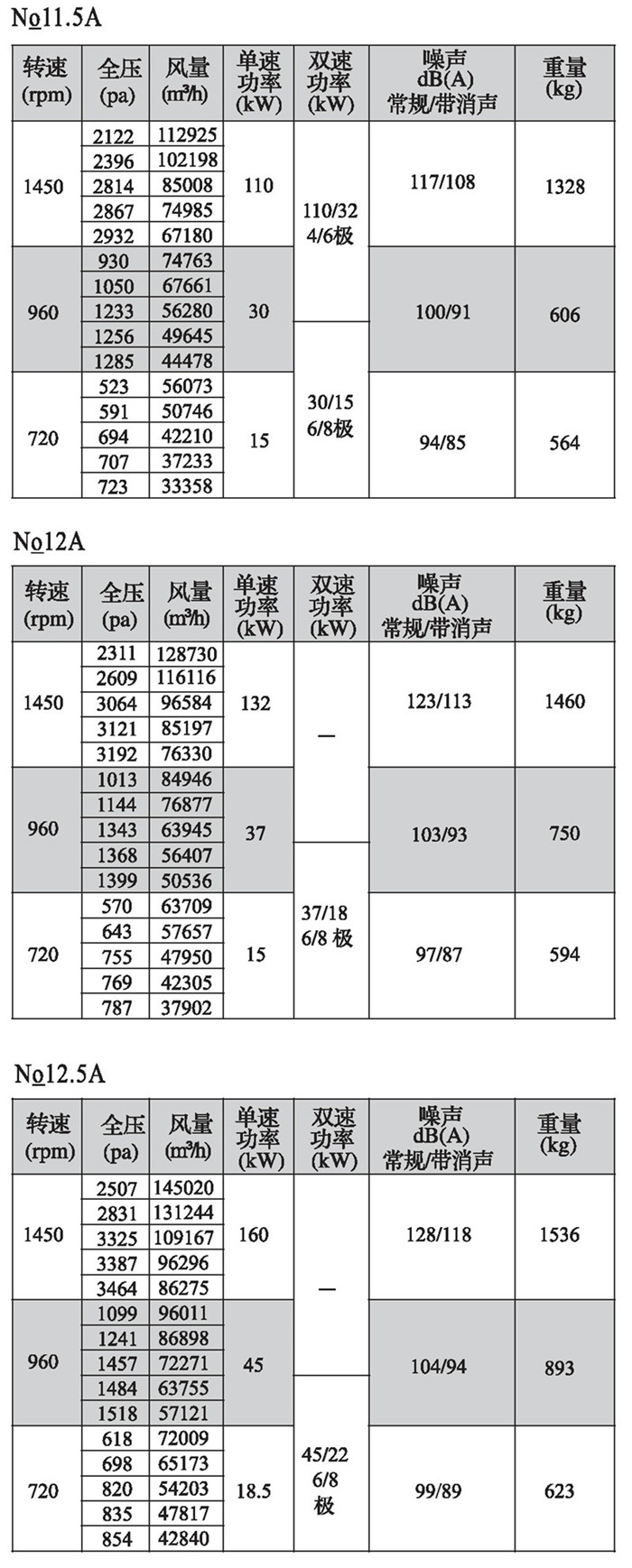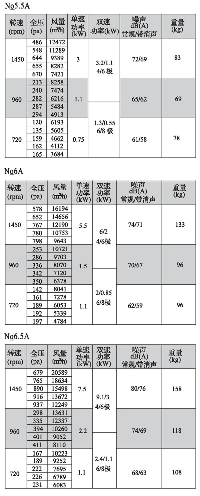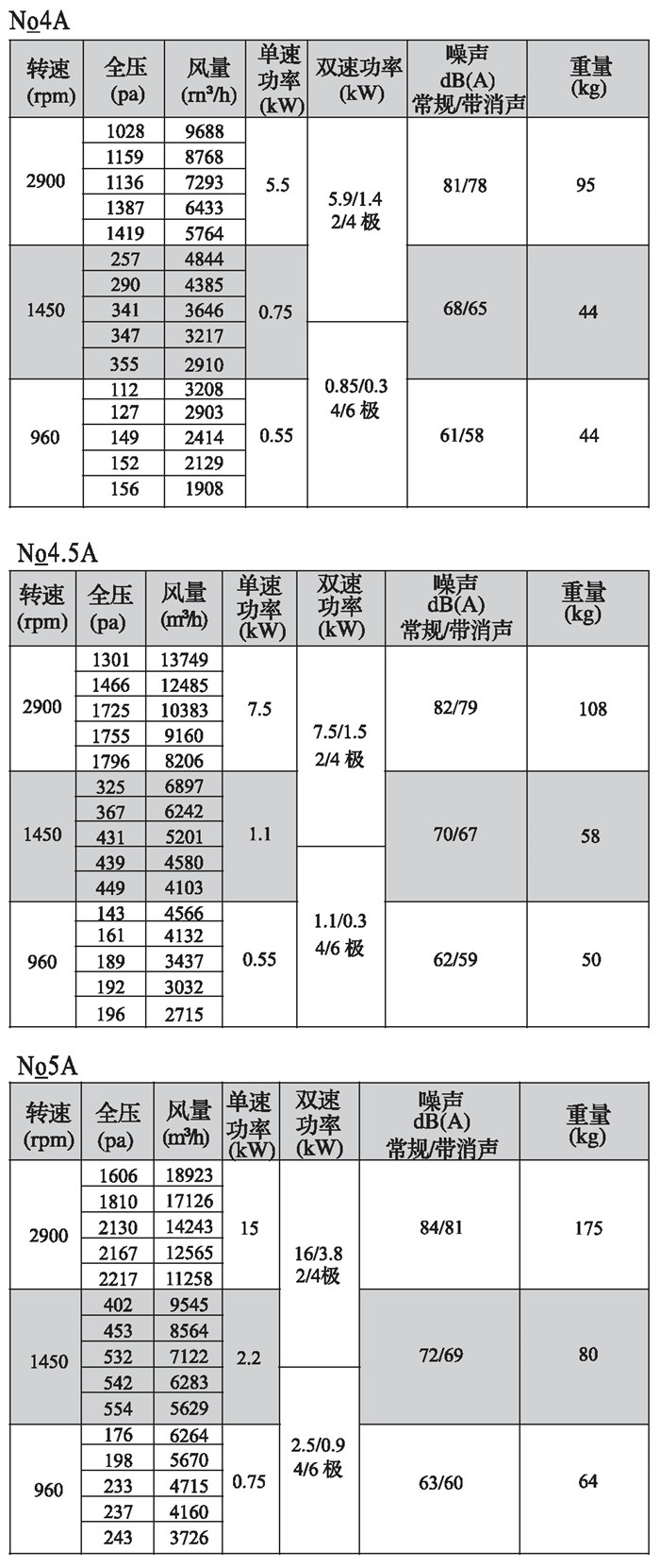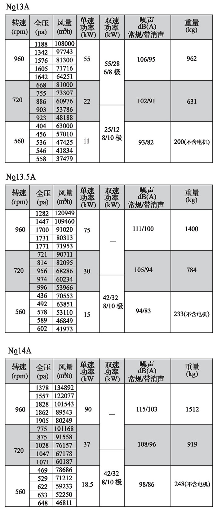 注:双速风机重量参考同号中高速风机的重量。